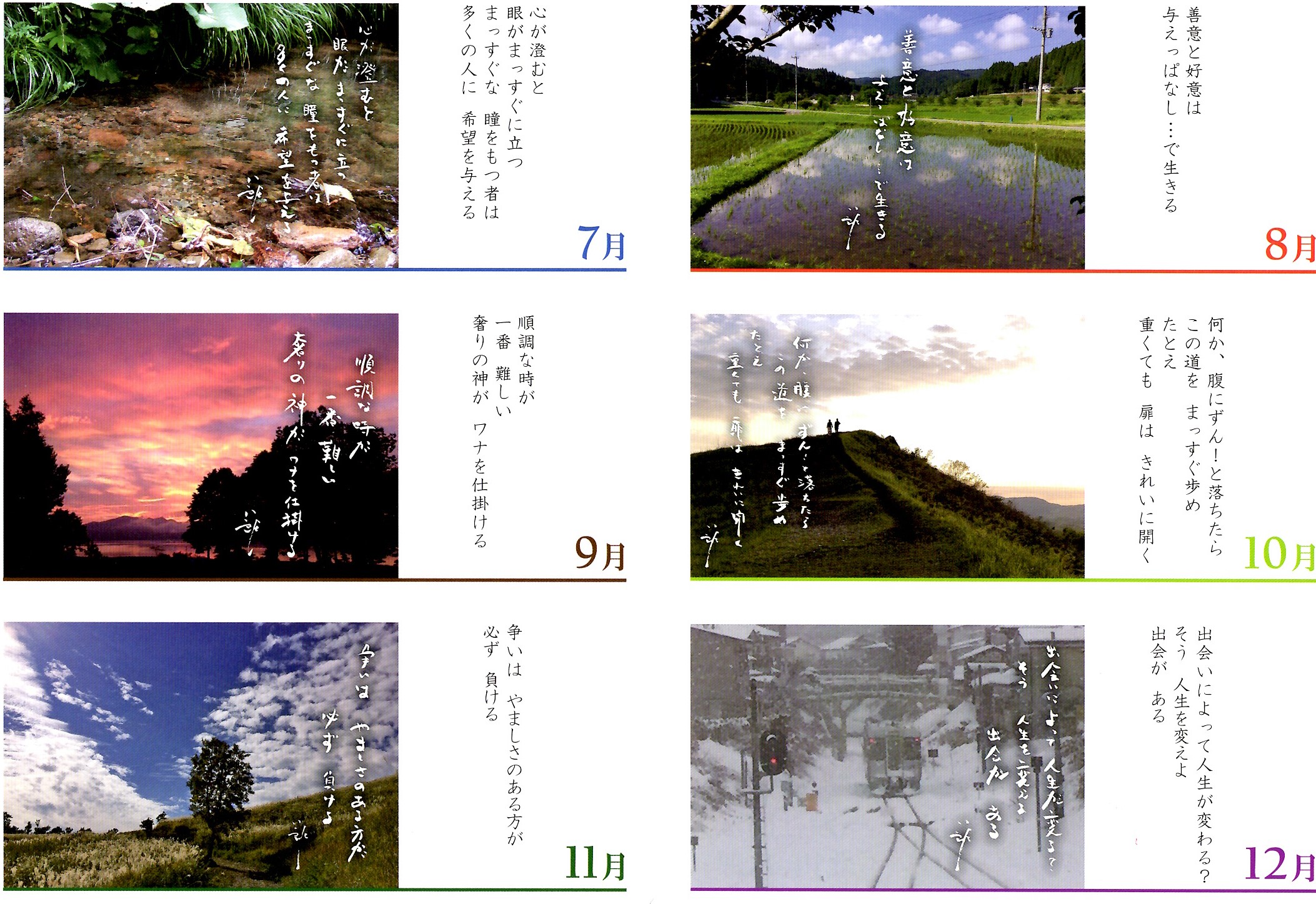 2019年のインフィニティのカレンダーは昨年に引き続き、恩師である北川八郎先生のお言葉と先生が撮影された写真をもとに作成いたしました。